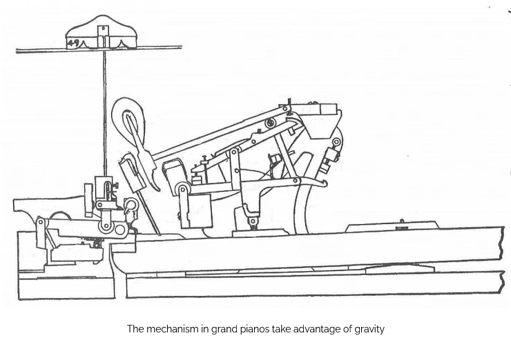 With that being said, why would people not just get the tallest uprights to save on space? After all, they do sound as good as the smallest grand pianos and moreover, space would be less of an issue. The answer lies in the action of grand pianos. Kudos to reference [2], for allowing me to learn the information that I am about to present.