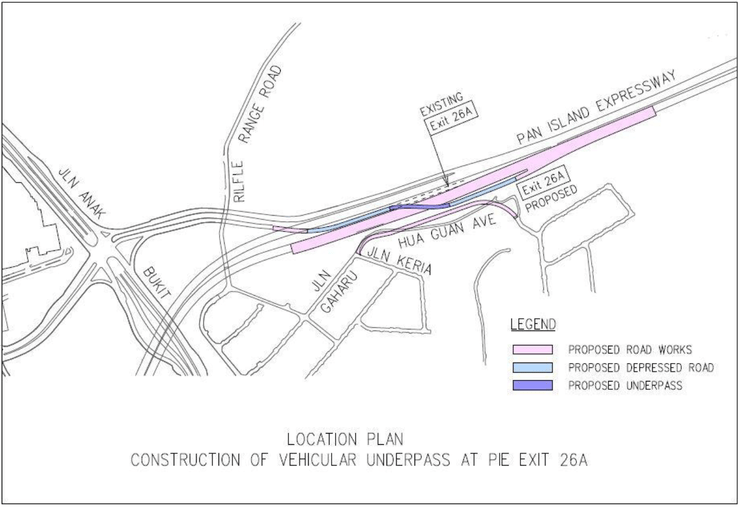 “The Land Transport Authority (LTA) has awarded a contract to Megastone Holdings Pte Ltd for the construction of a vehicular underpass at PIE. The new underpass will replace the existing PIE Exit 26A leading towards Clementi Road.