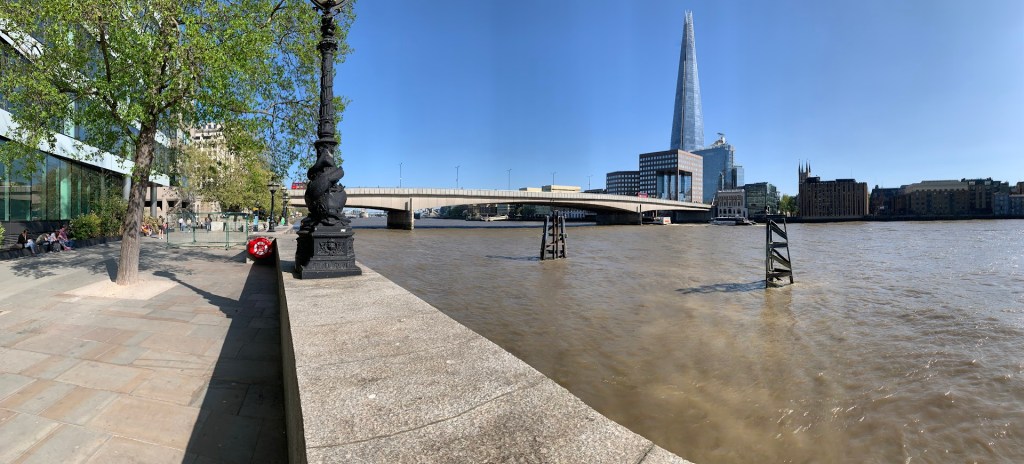 Once I was done visiting St. Paul’s, I walked back to the vicinity of London Bridge. Look at the following photograph – a panaromic shot of London Bridge with The Shard (tallest building in the UK, standing at just above 300 m) in the background. Wouldn’t you agree that it’s underwhelming compared to Tower Bridge?