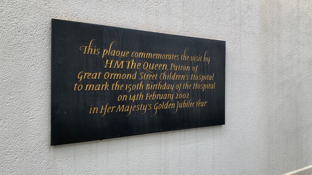 From what I had seen at the entrance of the hospital, I learnt a number of things: 1) that Elizabeth II had visited the hospital in 2002 to commemorate the hospital’s 150th anniversary as part of the Golden Jubilee celebration of her accession (she was coronated in 1952 after all).