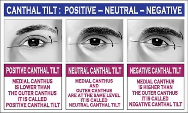 An attractive eye would not have scleral show (i.e. you wouldn’t be able to see the bulbar conjunctiva beneath the inferior portion of the corneal limbus). Moreover, a positive canthal tilt is attractive. The following image illustrates what I mean (note that the person’s left eye is shown here):