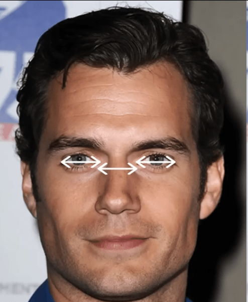 The distance between the medial canthus of both eyes should be approximately the width of one eye: