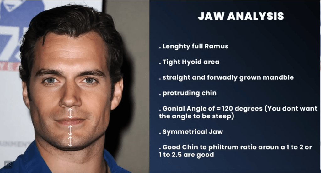 One of the first features about a man’s face that people would note is his jawline (or lack thereof). The following illustrates a good, chiseled, and well-defined jawline. These photographs constitute the front and side profiles of none other than Henry Cavill.